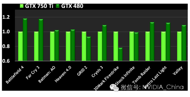 这些小型系统通常用于游戏和家庭娱乐,最近的例子是Valve Software新近发布的Steam Machines运动。因为GM107惊人的架构效率,在1080p分辨率下,GeForce GTX 750 Ti 的性能通常可与我们四年前的旗舰GPU——GeForce GTX 480比肩,然而热设计功耗仅为区区60W,是后者的四分之一。