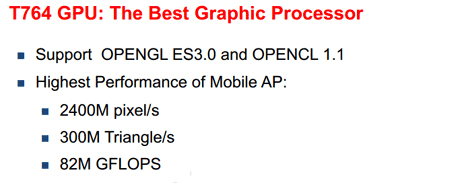此外,为了让有助于实现更快的新产品上市时间,ARM还为所有基于三代Midgard架构的Mali GPU提供一整套兼容的驱动程序,可最大限度地减少了软件升级费用。ARM Mali-T764 GPU支持众多的图形和计算API,包括DirectX 11.1 Feature_Level_11(基本就是DX11)、OpenGL ES 1.1/2.0/3.0、OpenCL 1.1。支持全面的API自然也带来了图形性能上的新提升,比如对OpenGL ES 3.0规范的支持,带来最明显的优点就是提升Android设备的硬件加速2D渲染性能,这意味着今后Android智能设备的UI界面及APP应用会更流畅。
